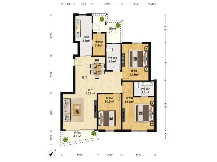 3室2厅1卫