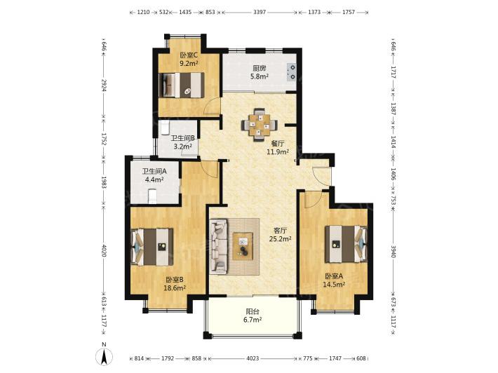 3室2厅1卫